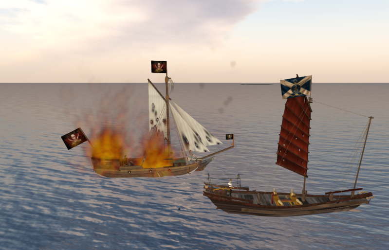 Then came Round Two — two mid-class ships and two mighty galleons entered the fray. Captain Trouble circled Ballyrae’s galleon like a hungry shark, striking again and again until it finally sank beneath the waves. Her own ship, the Batavia, however, suffered heavy damage. As the smaller ships closed in and fired at her stern, the Batavia went down in flames and foam.